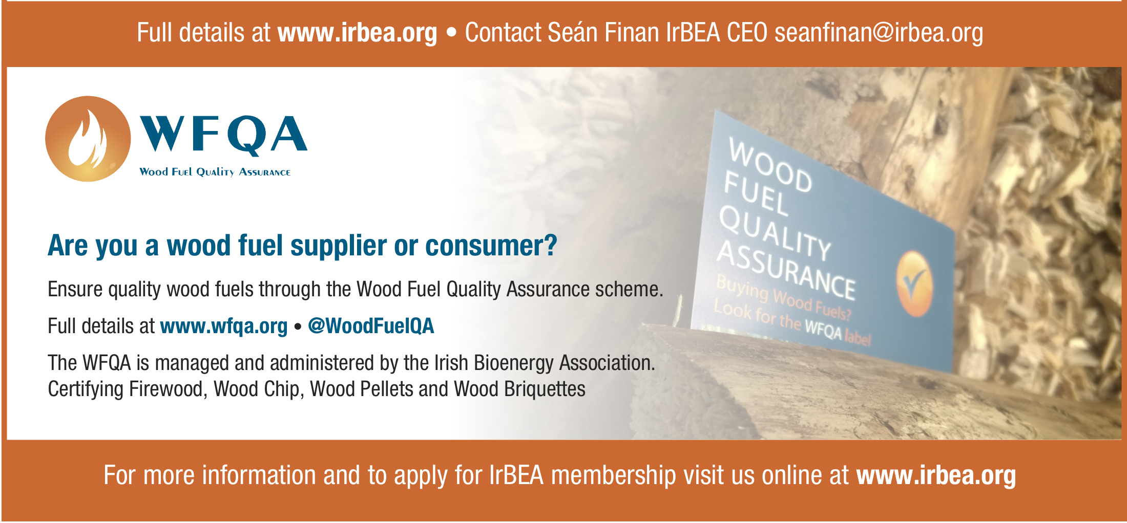 IrBEA was founded in 1999 and is the representative body for the bioenergy industry on the island of Ireland. IrBEA works on behalf of its members across the bioenergy sectors of biomass, biogas/biomethane, biofuels, biochar, woodfuels and energy crops. IrBEA is recognised by Government and key stakeholders as the voice of the bioenergy industry.