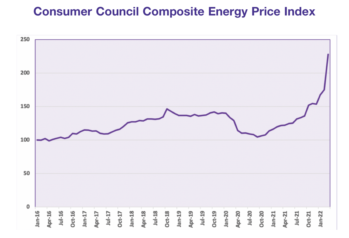 Between December 2021, and March 2022, our Home Energy Price Index shows energy prices increased by 48 per cent and with forecasts that energy prices will remain high for some time, greater consumer support will be essential during the winter of 2022/23.